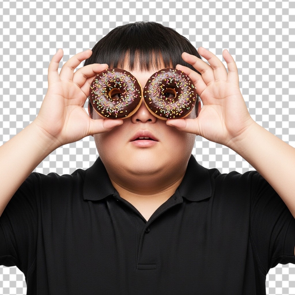 Funny Young Man Holding Two Chocolate Donuts Over His Eyes PNG Transparent Background