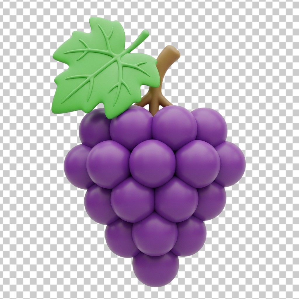 3D Purple Grapes Fruit with Green Leaf PNG Transparent Background