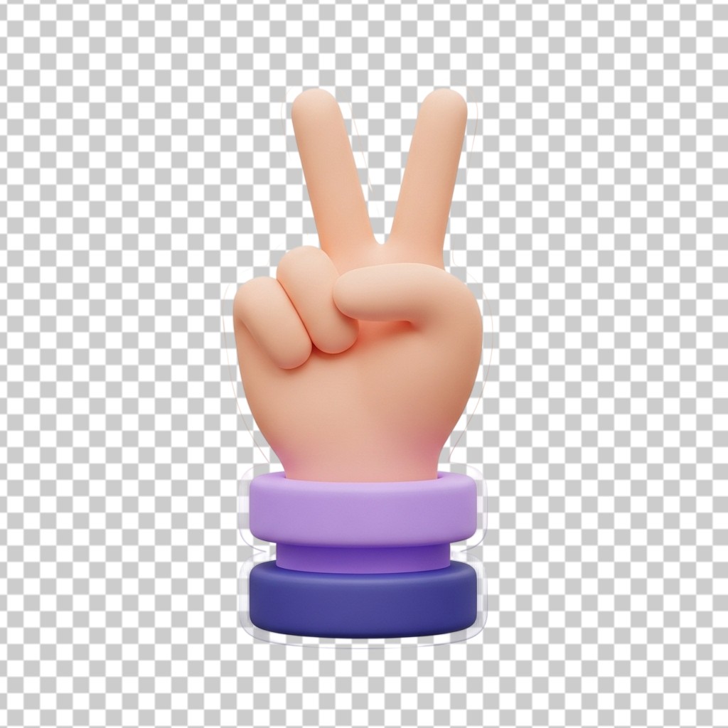 3D Human Hand Showing Peace or Victory V Sign PNG Transparent Background