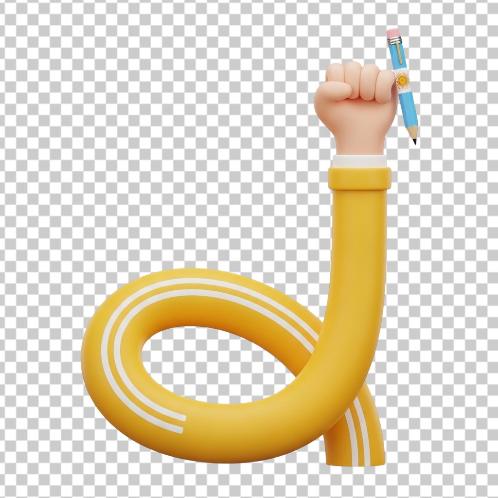 3D Long Elastic Arm Holding a Blue Pencil PNG Transparent Background