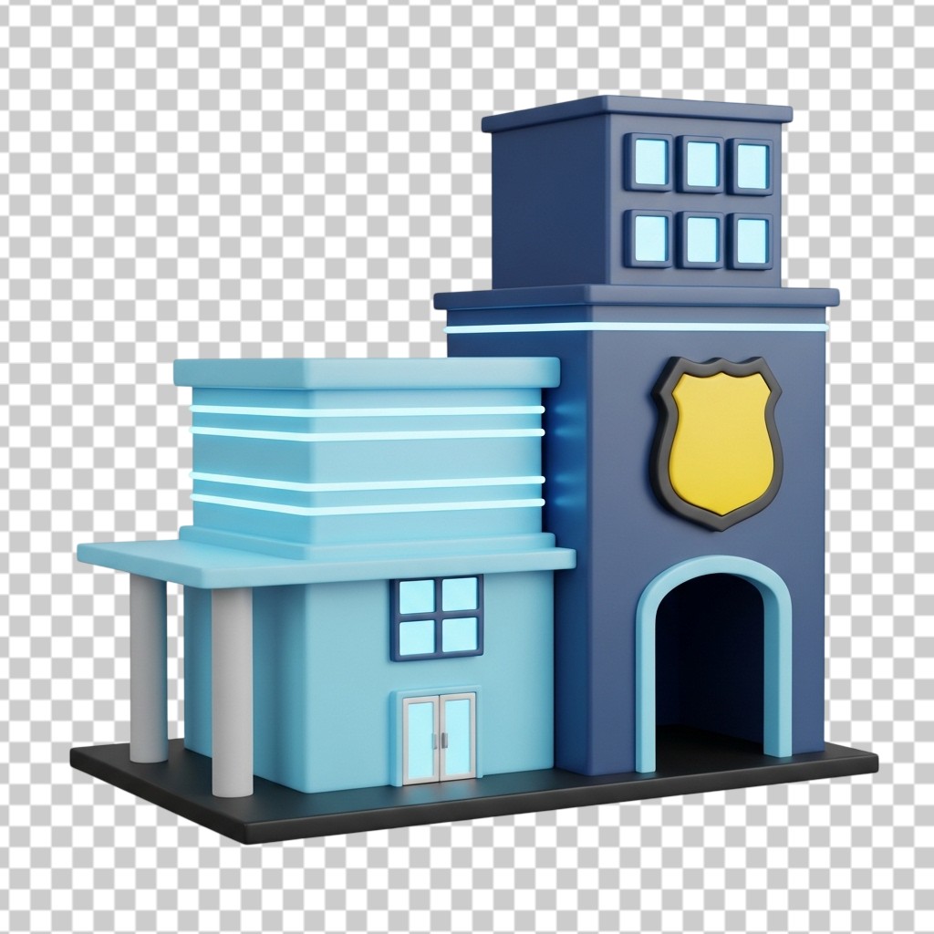 3D Isometric Police Station Building with Shield Icon PNG Transparent Background