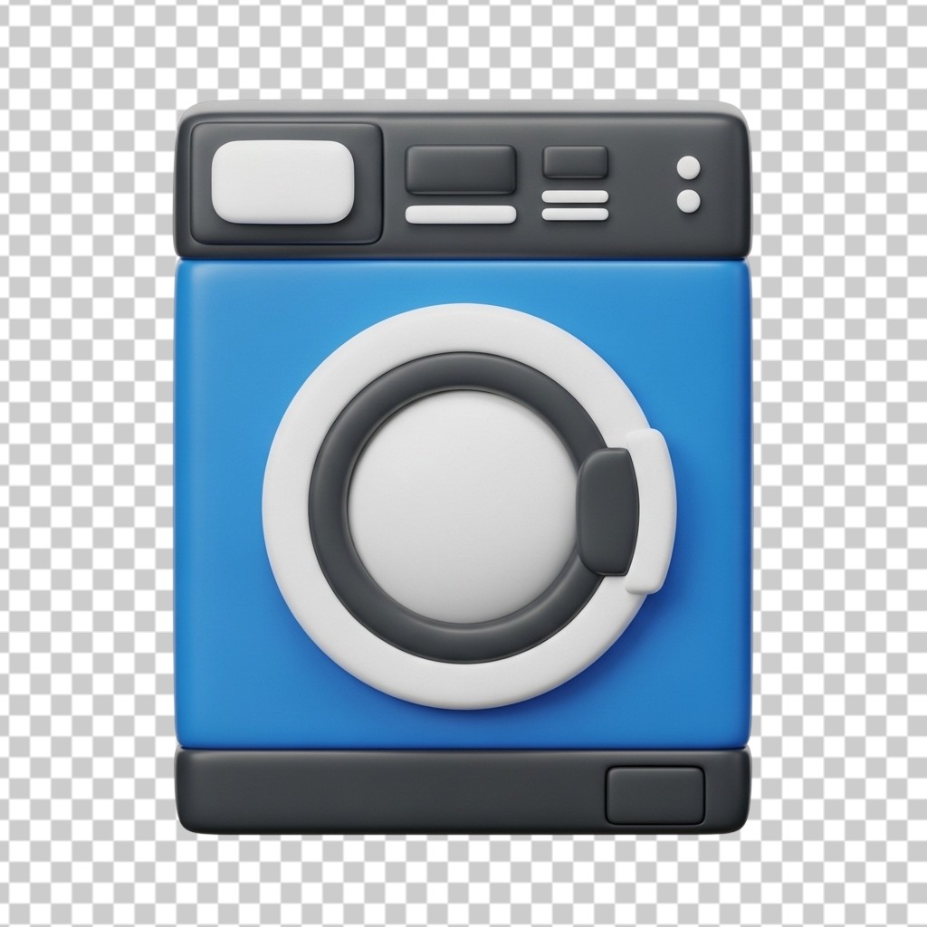 Modern 3D Blue Washing Machine Appliance PNG Transparent Background
