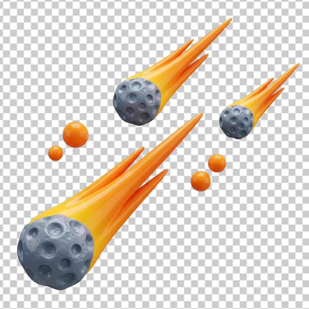 3D Space Illustration of Falling Meteors and Comets PNG Transparent Background