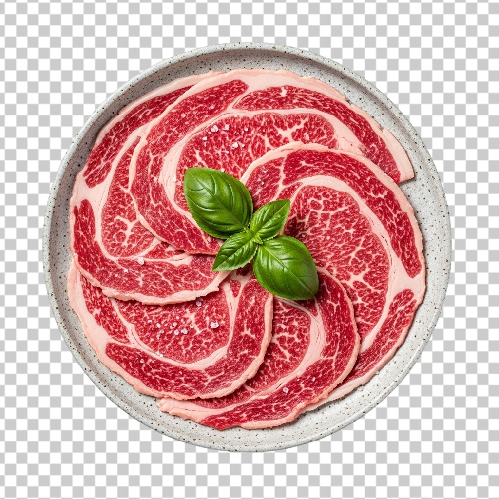 Plate of Thinly Sliced Raw Beef Meat PNG Transparent Background
