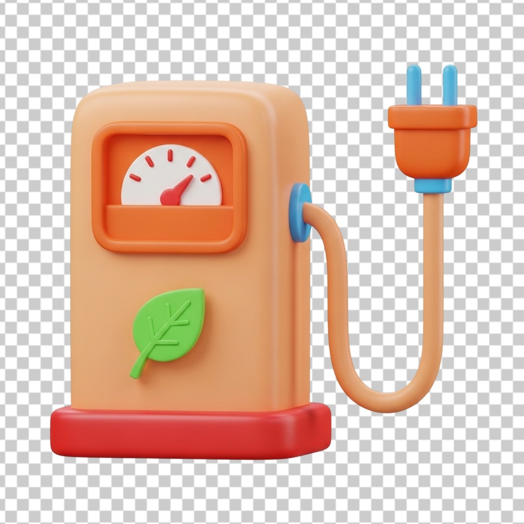 3D Electric Vehicle Eco Charging Pump Station PNG Transparent Background