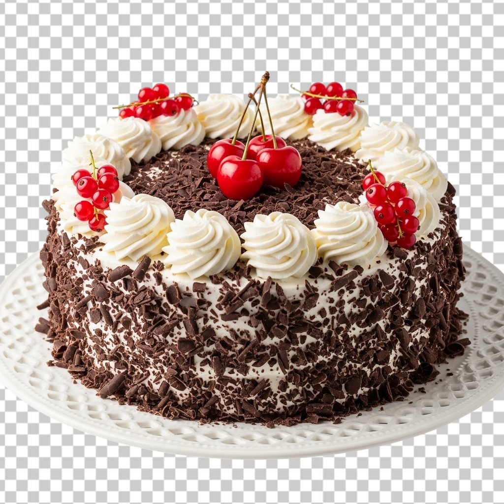 Delicious Chocolate Sponge Cake with Whipped Cream and Red Cherries PNG Transparent Background