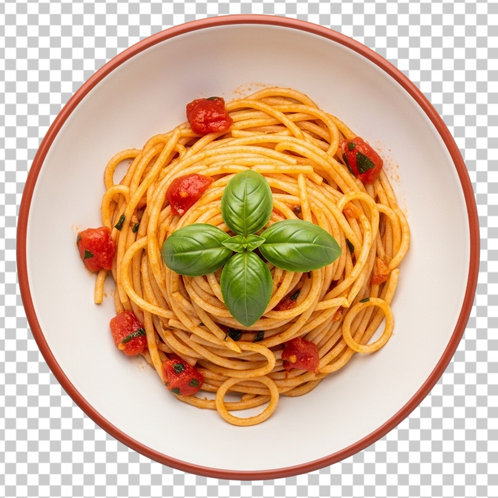 Delicious Italian Spaghetti Bolognese Pasta with Fresh Basil on Plate PNG Transparent Background