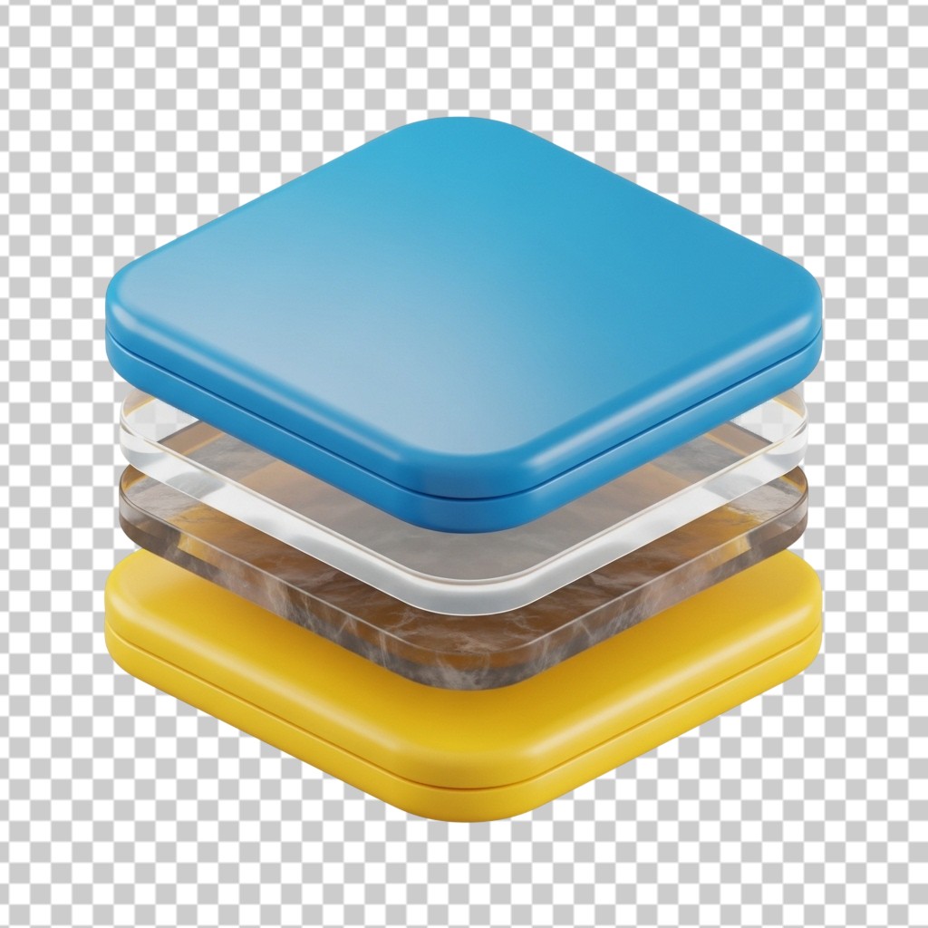 3D Stacked Abstract Geometric Colorful Layers PNG Transparent Background