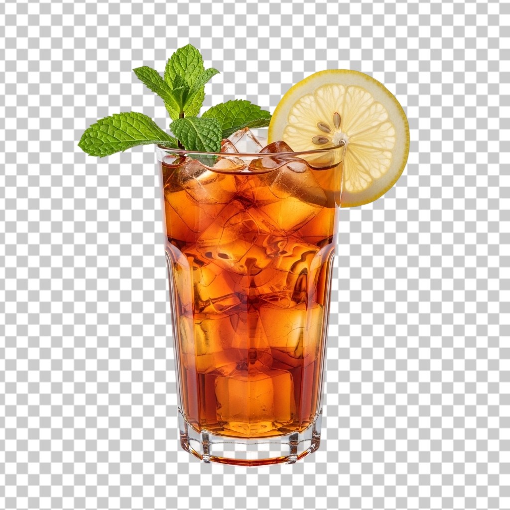 Iced Tea Cocktail with Lemon Slices and Fresh Mint PNG Transparent Background