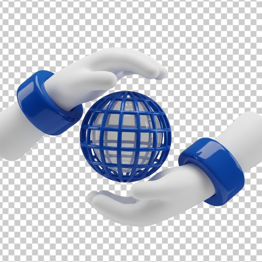 3D Hands Holding Blue Wireframe Globe Concept PNG Transparent Background