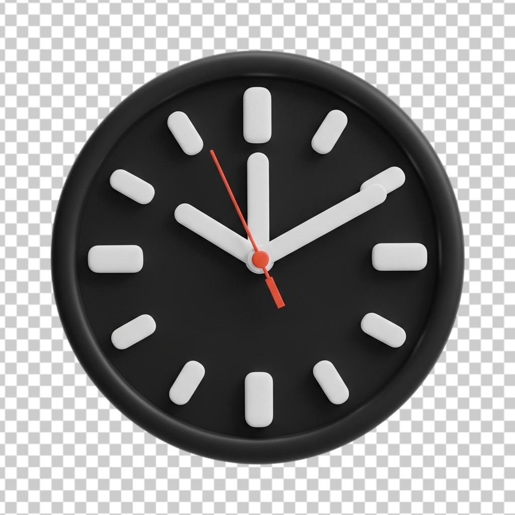 Modern Minimalist Wall Clock Office 3D Illustration PNG Transparent Background