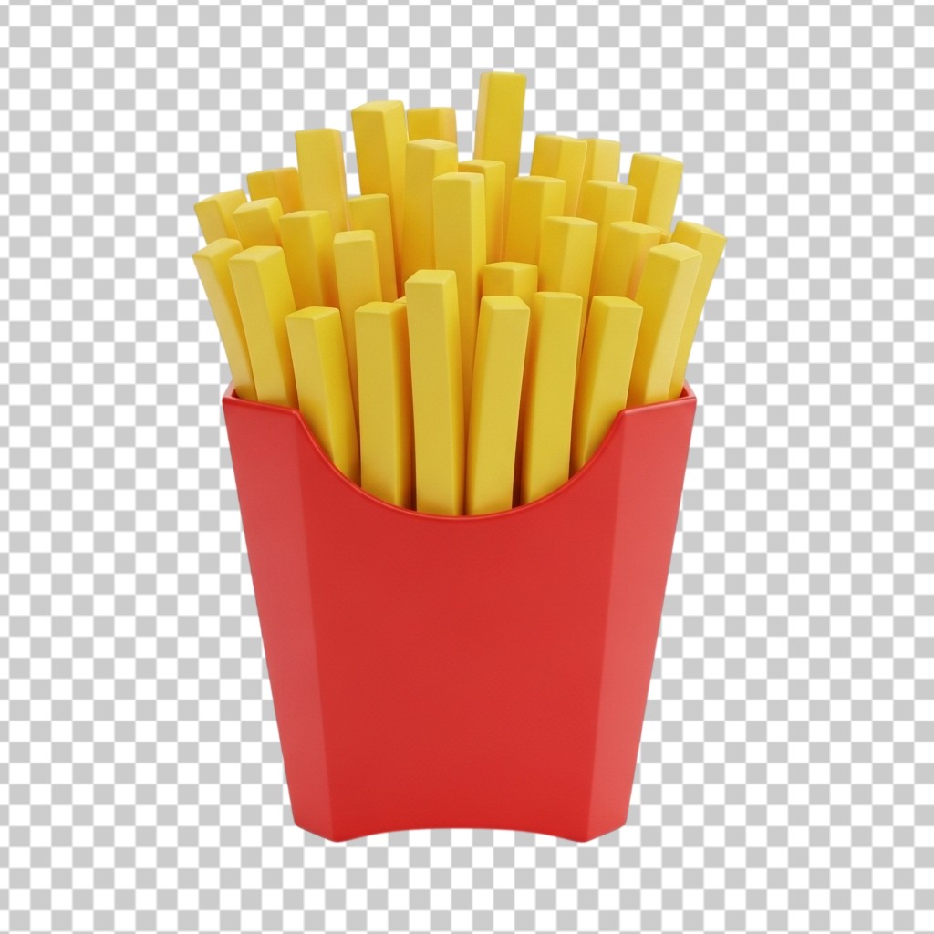 3D Box of Salty French Fries Fast Food PNG Transparent Background