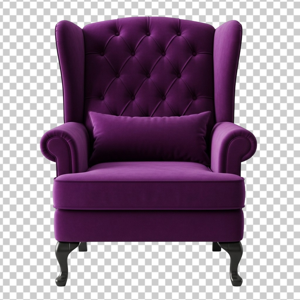 Luxury Purple Velvet Wingback Armchair PNG Transparent Background