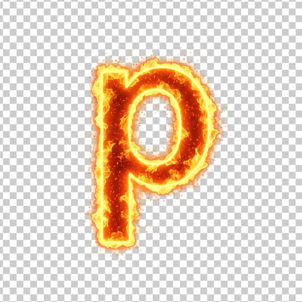 Stylized Burning Fire Alphabet Letter P with Flame Effects PNG Transparent Background