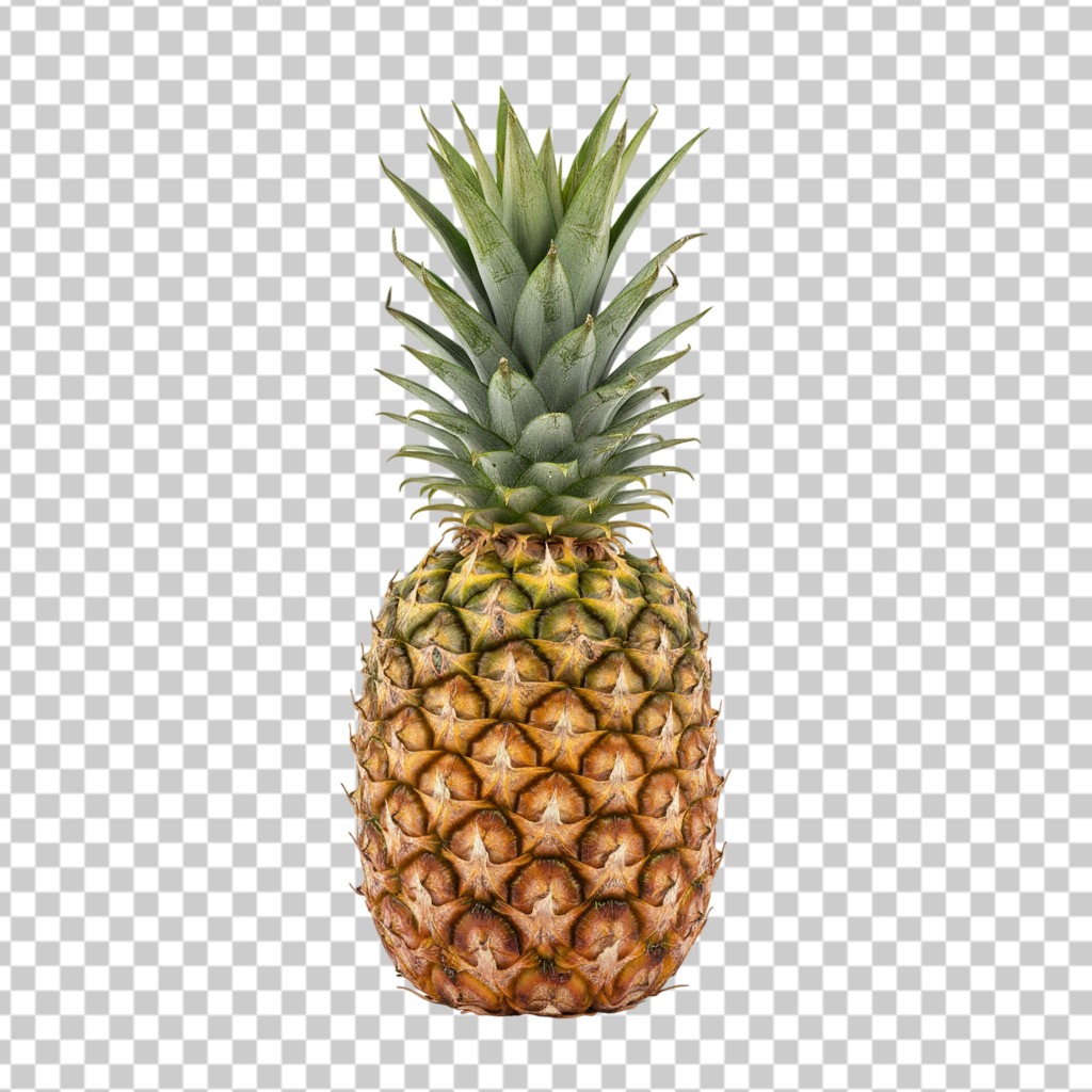 Whole Ripe Pineapple with Green Leaves PNG Transparent Background