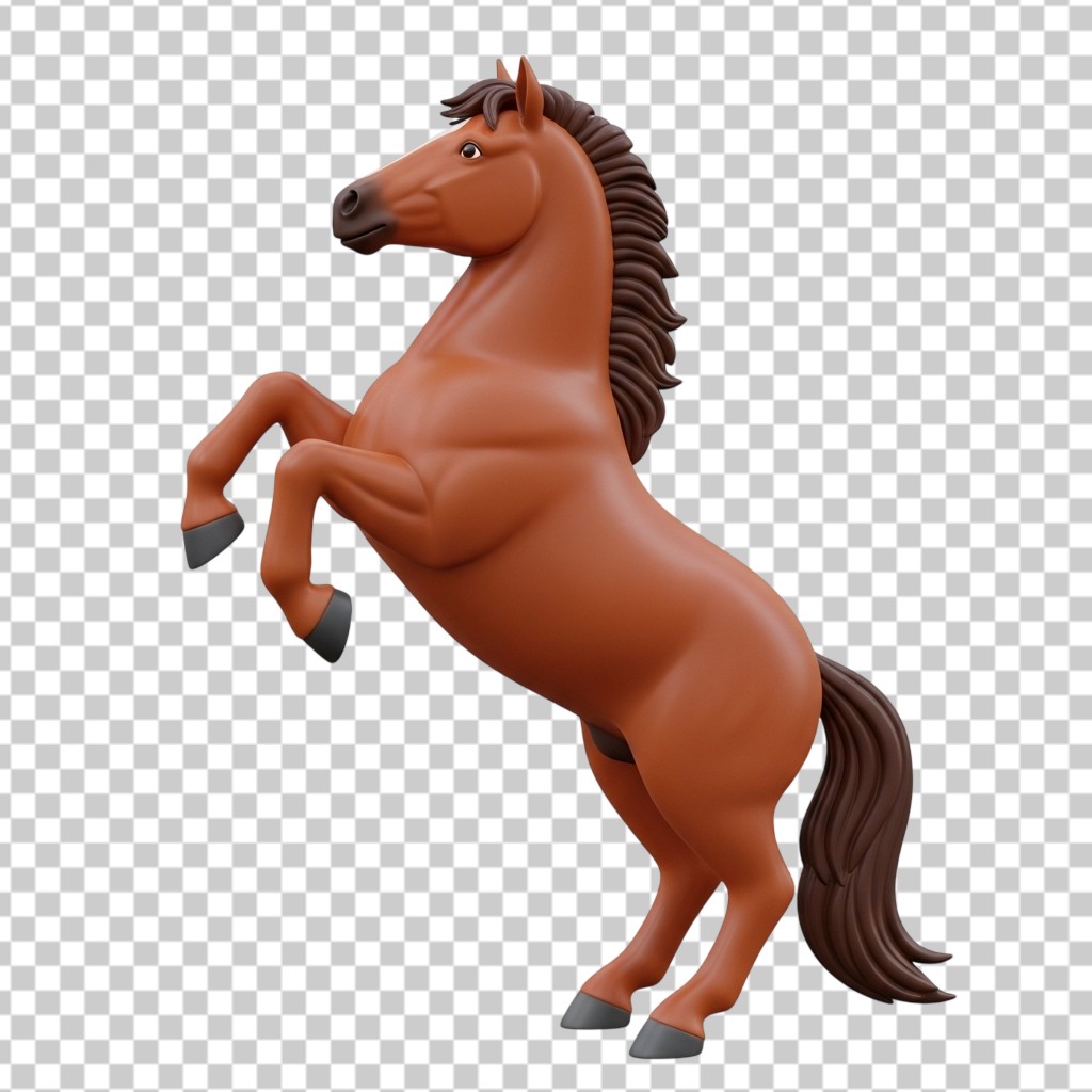 Majestic Brown Horse Standing on Hind Legs 3D Rendering PNG Transparent Background