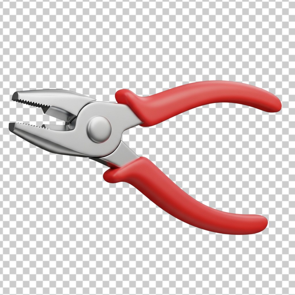 3D Pliers Tool with Red Handles for Repair and Construction PNG Transparent Background