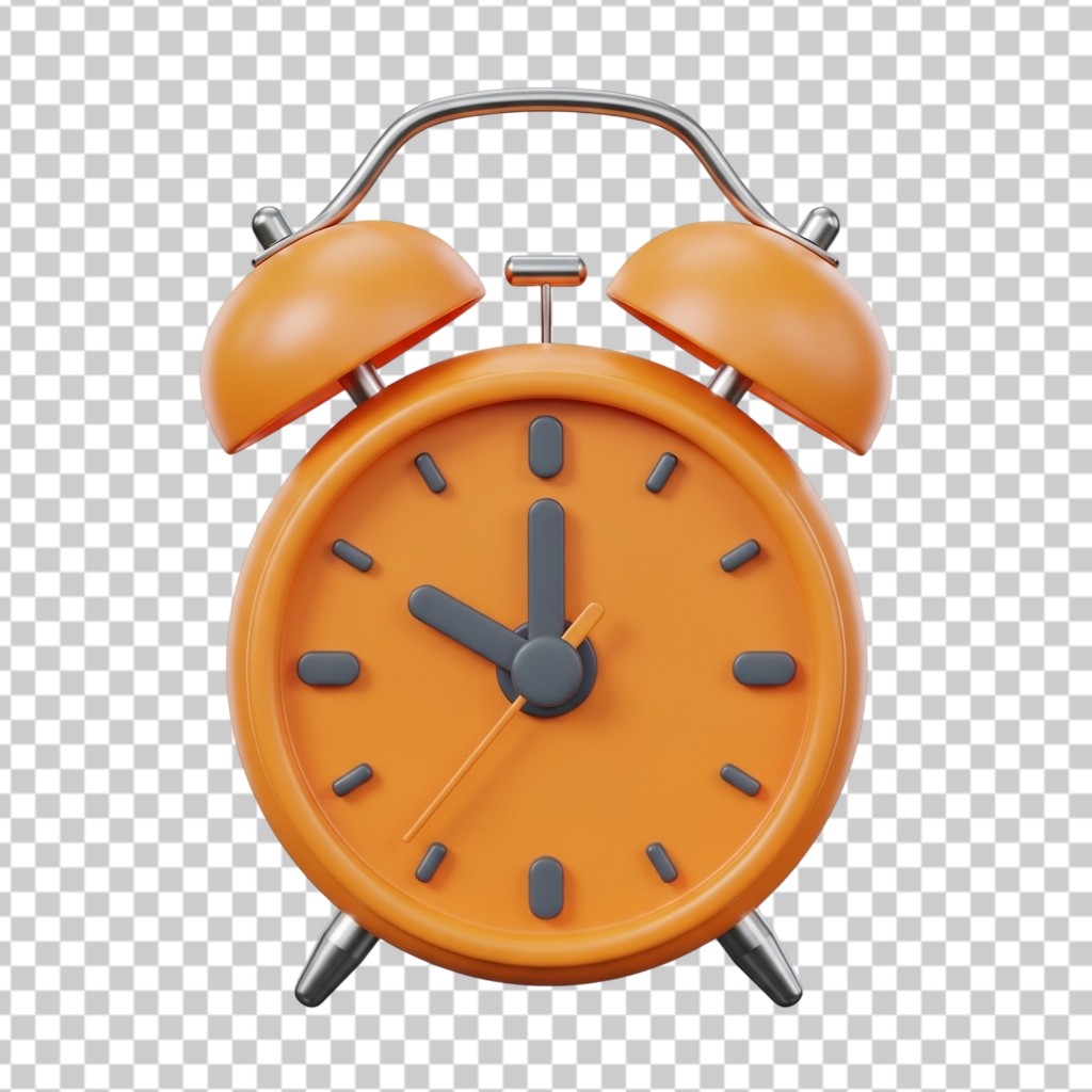 3D Orange Desktop Alarm Clock Illustration PNG Transparent Background