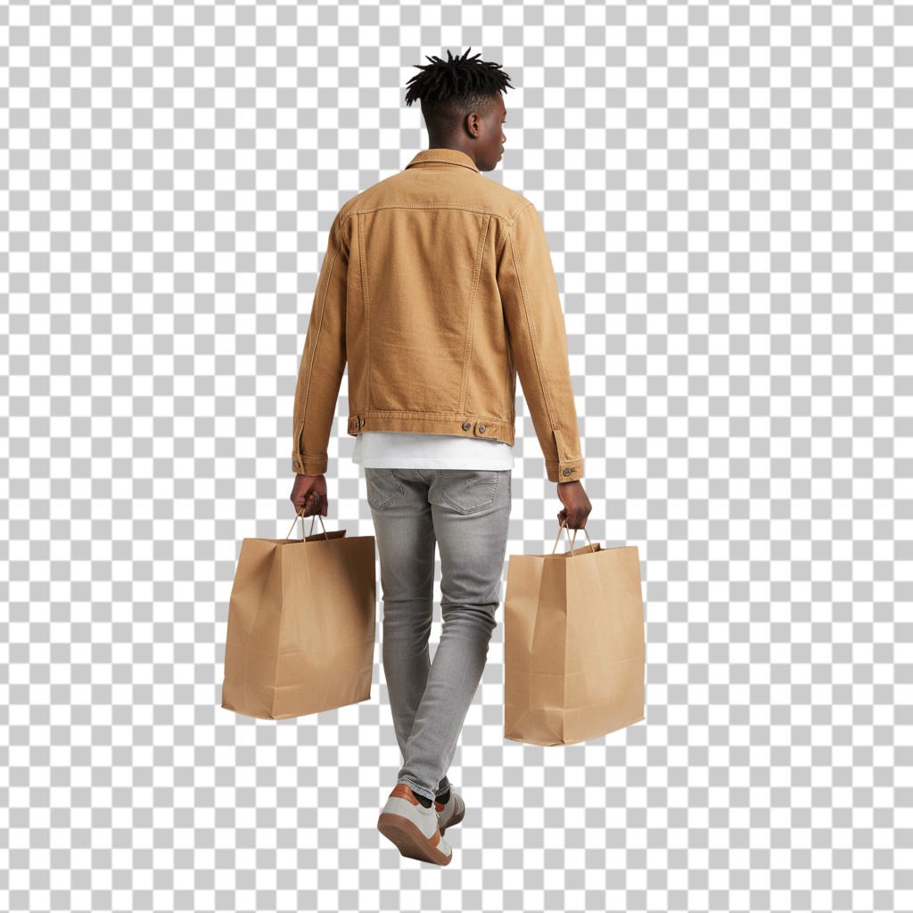 Man Carrying Multiple Shopping Bags Back View Real People PNG Transparent Background