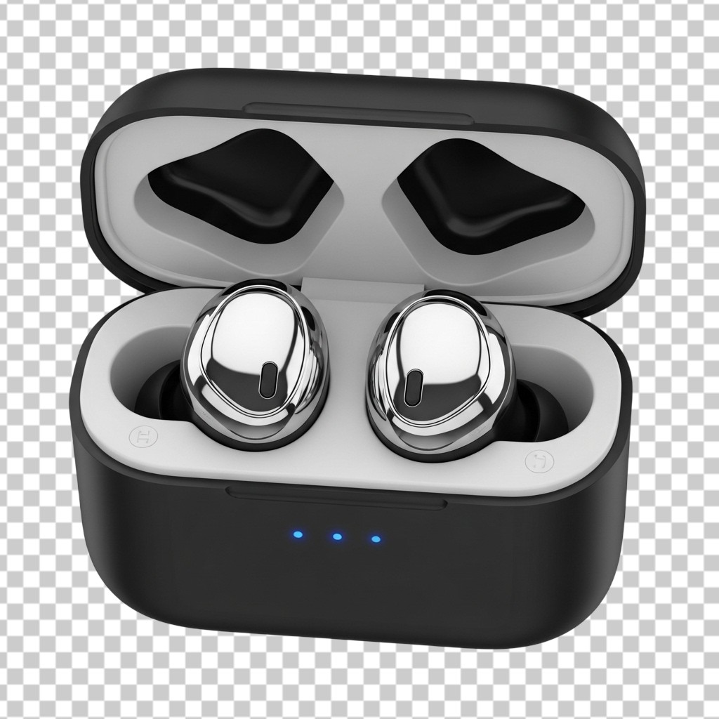 Modern Sleek Black Wireless Earbuds with Charging Case PNG Transparent Background