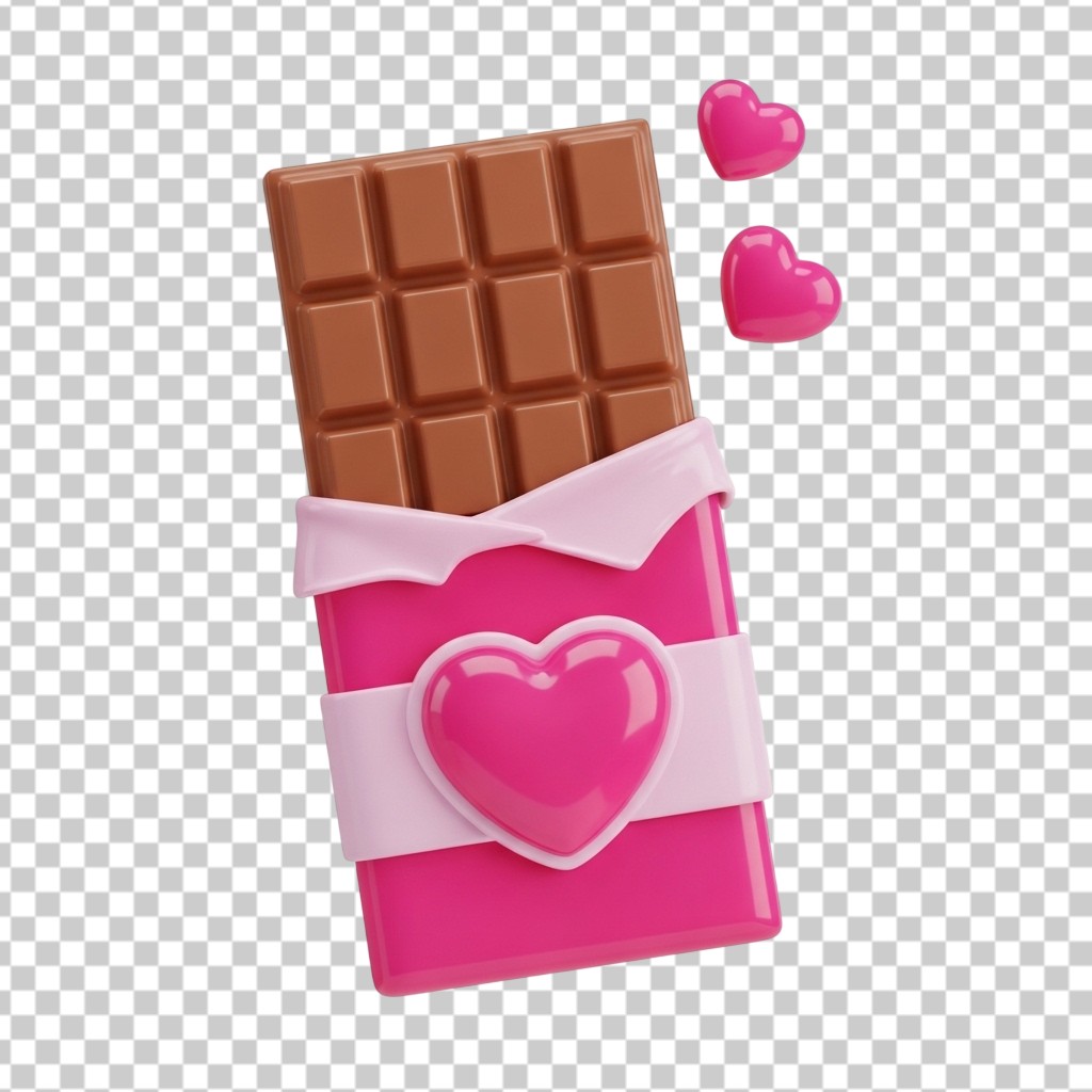 3D Pink Chocolate Bar Wrapper with Hearts PNG Transparent Background