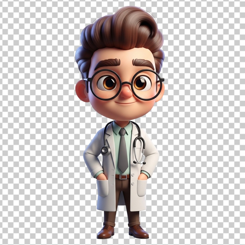 Cute 3D Doctor Character in White Lab Coat PNG Transparent Background