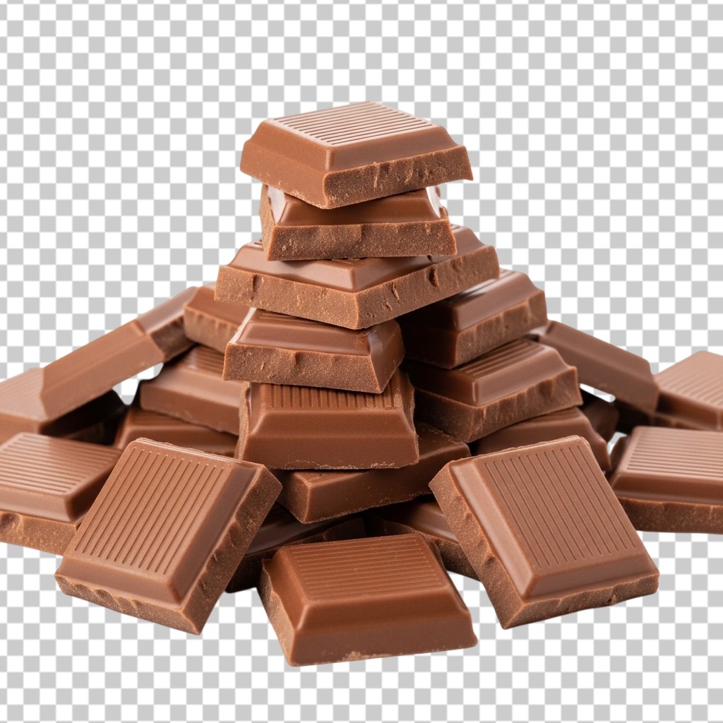 Heap of Broken Milk Chocolate Bar Pieces PNG Transparent Background