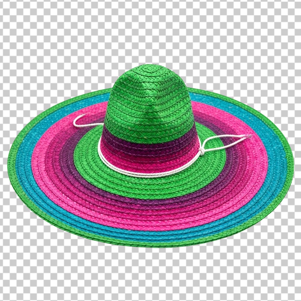 Traditional Mexican Sombrero Hat with Colorful Rainbow Stripes PNG Transparent Background