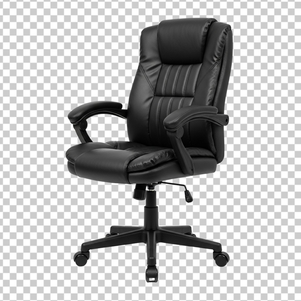 Modern Black Leather Swivel Office Chair PNG Transparent Background
