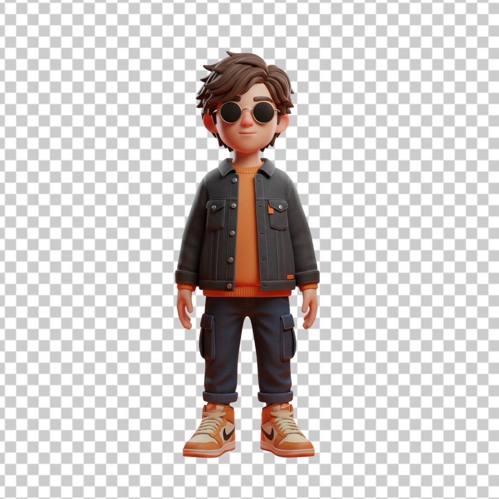 3D Stylish Boy Character with Sunglasses and Denim Jacket PNG Transparent Background