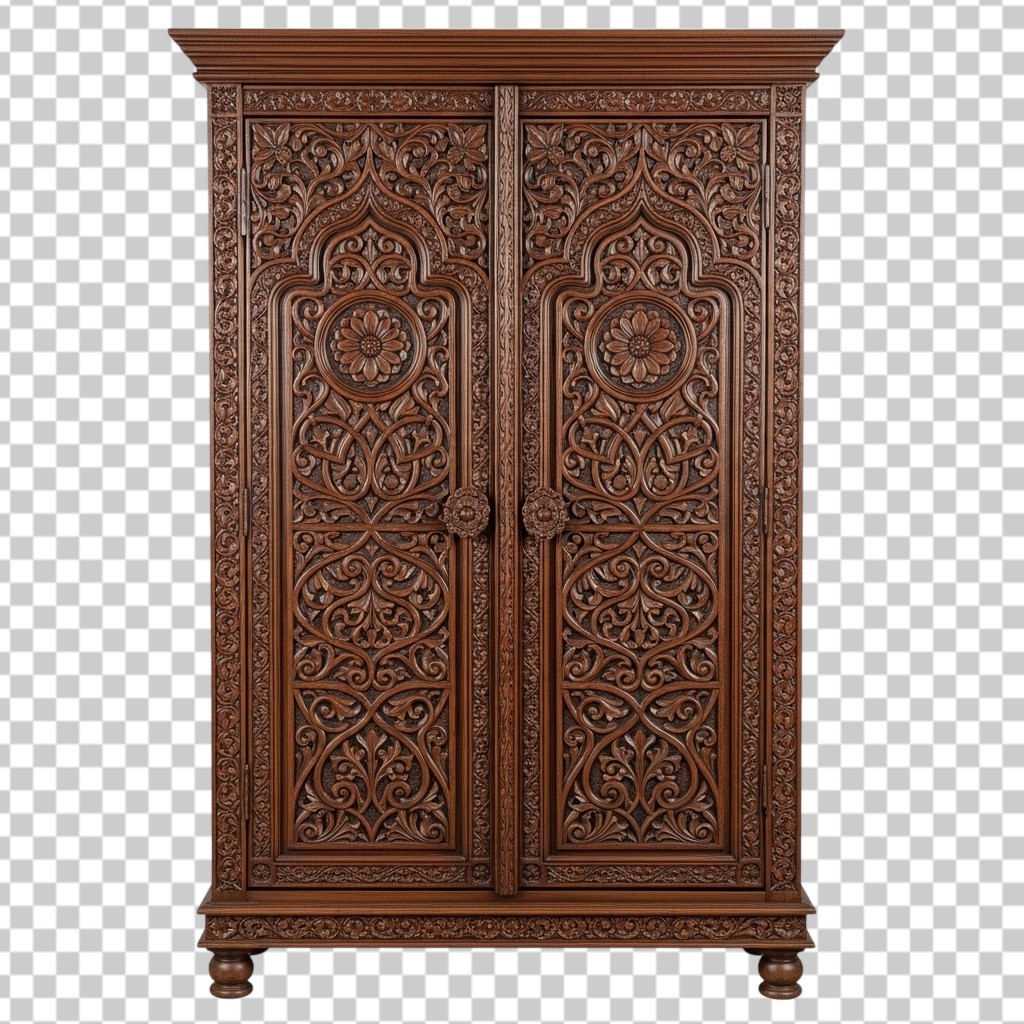 Antique Carved Wooden Wardrobe Cabinet Furniture PNG Transparent Background