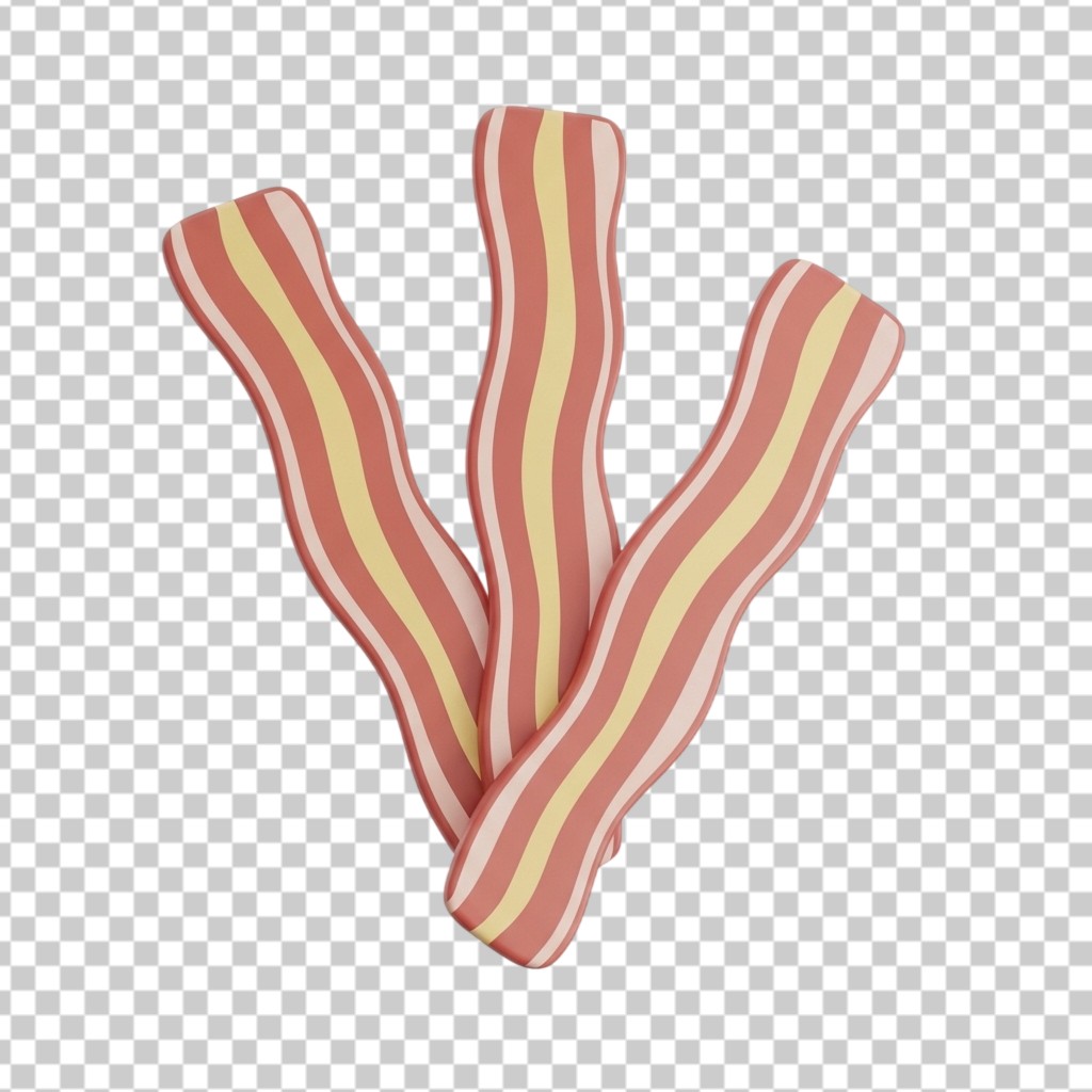 3D Three Pieces of Crispy Fried Bacon Strips PNG Transparent Background
