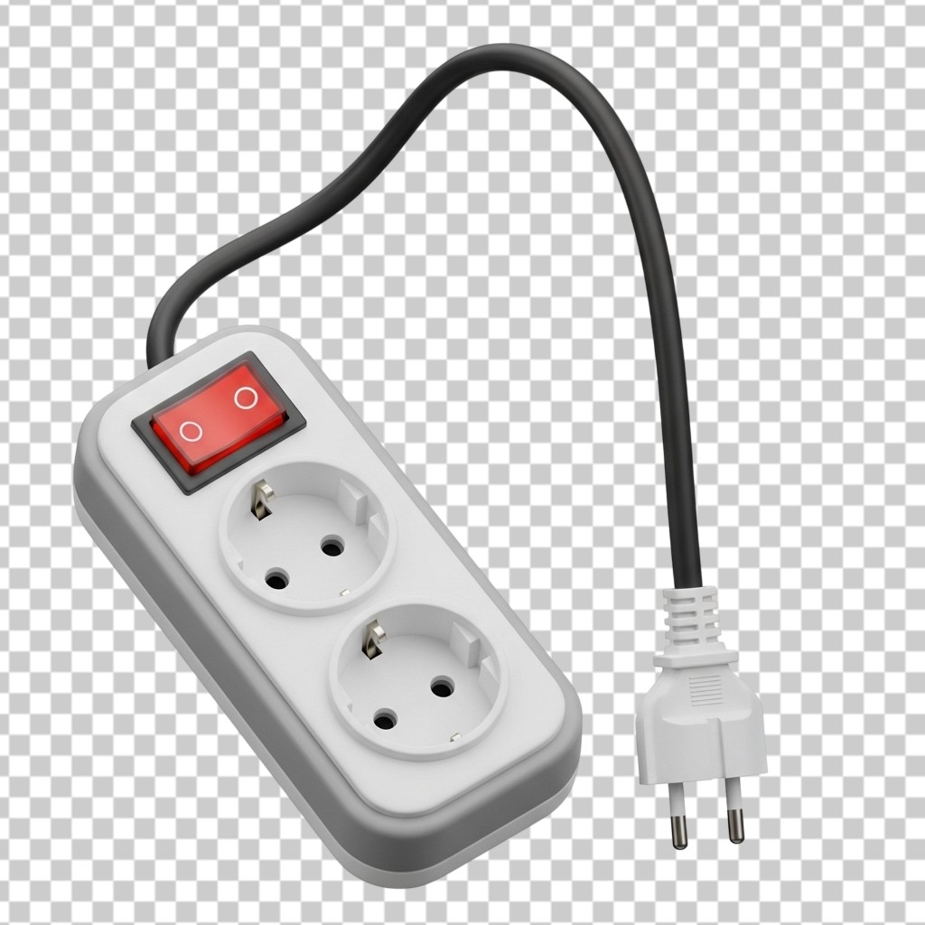 3D White Electric Power Strip Extension Cord with Plug and Switch PNG Transparent Background