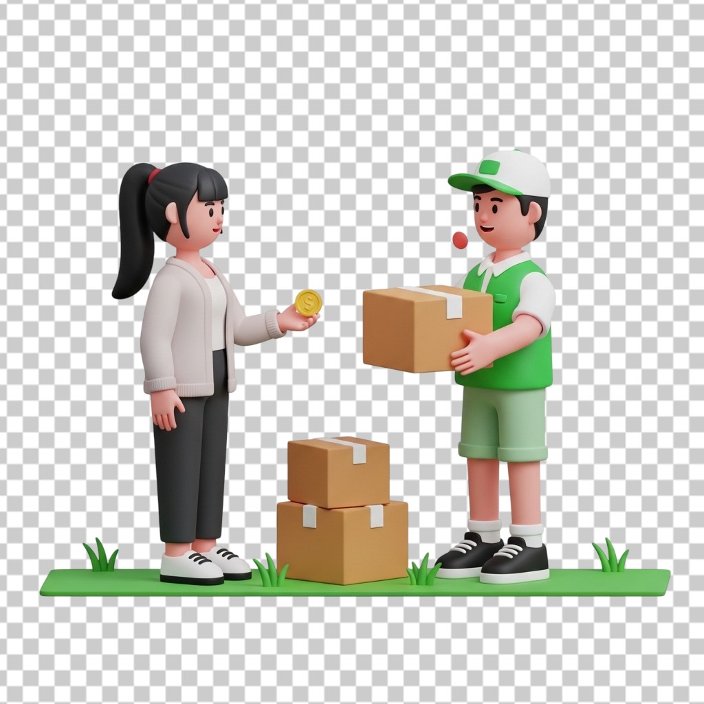 3D Delivery Man Handing Over Package Box to Customer PNG Transparent Background
