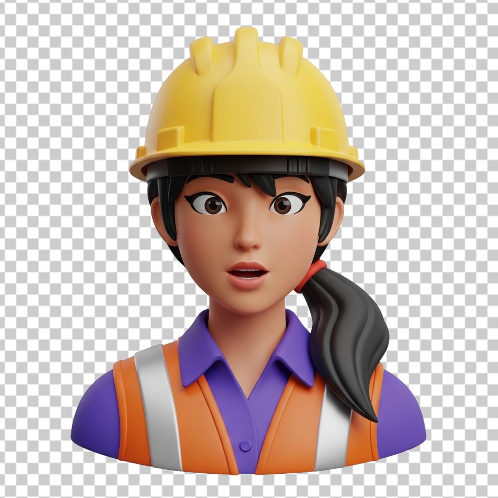 3D Female Construction Worker Character in Helmet PNG Transparent Background