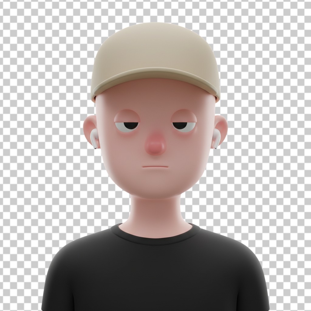 3D Male Avatar Character with Beige Cap and Black Shirt PNG Transparent Background