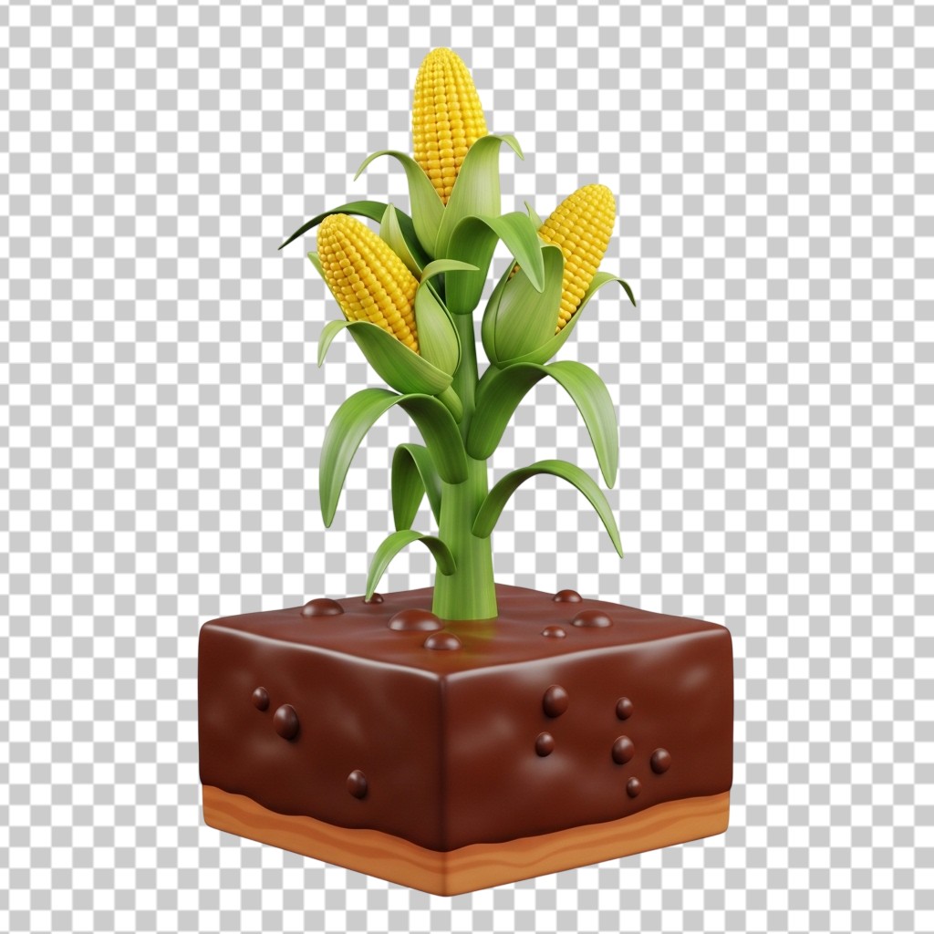Growing Corn Plants in a Soil Block for Agriculture PNG Transparent Background