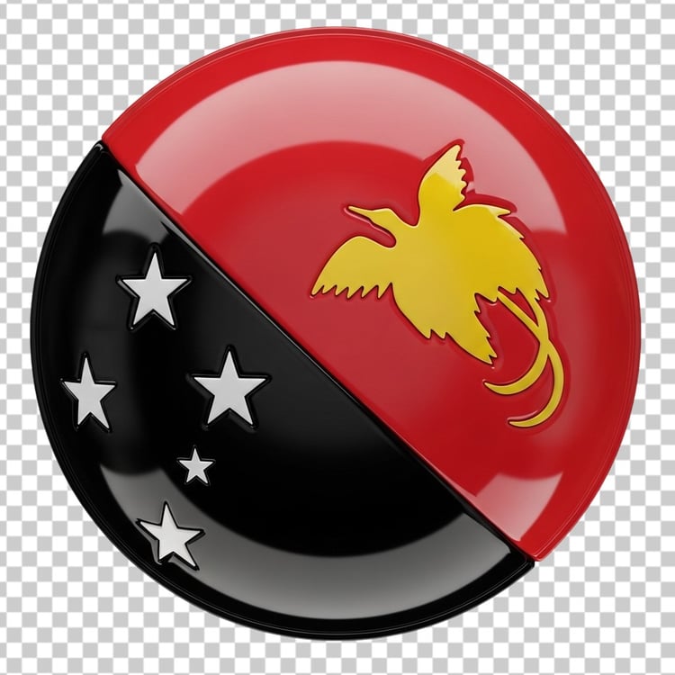 Waving National Flag of Papua New Guinea on a Silver Metal Flagpole PNG Transparent Background