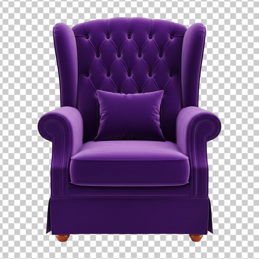 Elegant Purple Tufted Wingback Armchair Furniture PNG Transparent Background