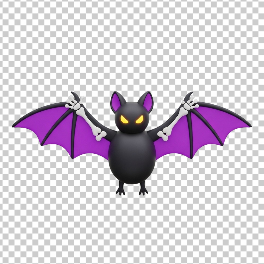 3D Spooky Purple Bat Halloween Character Mascot PNG Transparent Background