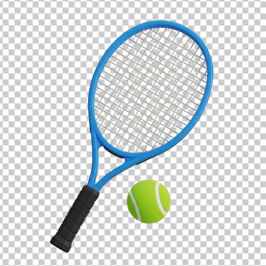 3D Tennis Racket with Yellow Tennis Ball Sports Equipment PNG Transparent Background