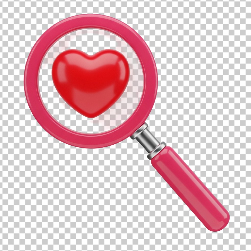 3D Magnifying Glass with Heart Love Icon PNG Transparent Background