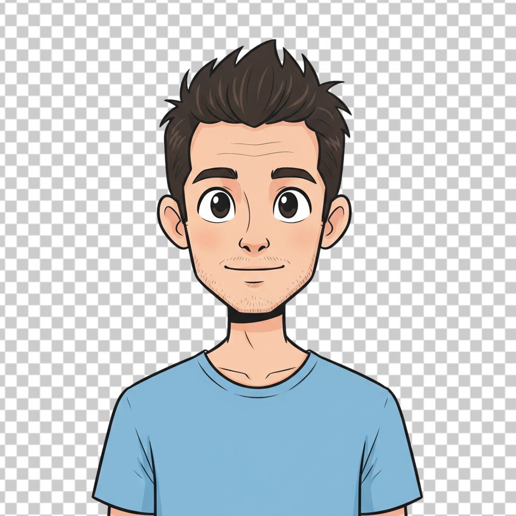 Simple Young Man Character in Blue T-shirt Illustration PNG Transparent Background
