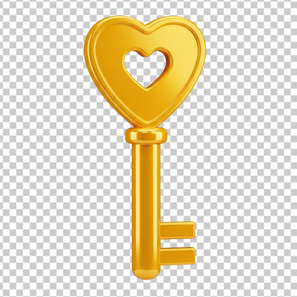 3D Golden Heart Shaped Key for Romantic Concepts PNG Transparent Background