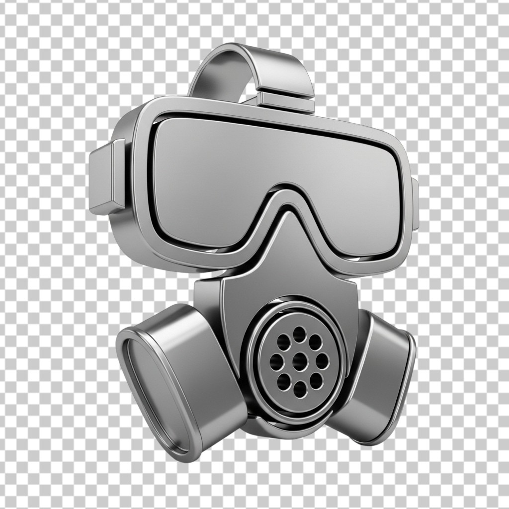 Industrial 3D Silver Metallic Protective Gas Mask Design PNG Transparent Background