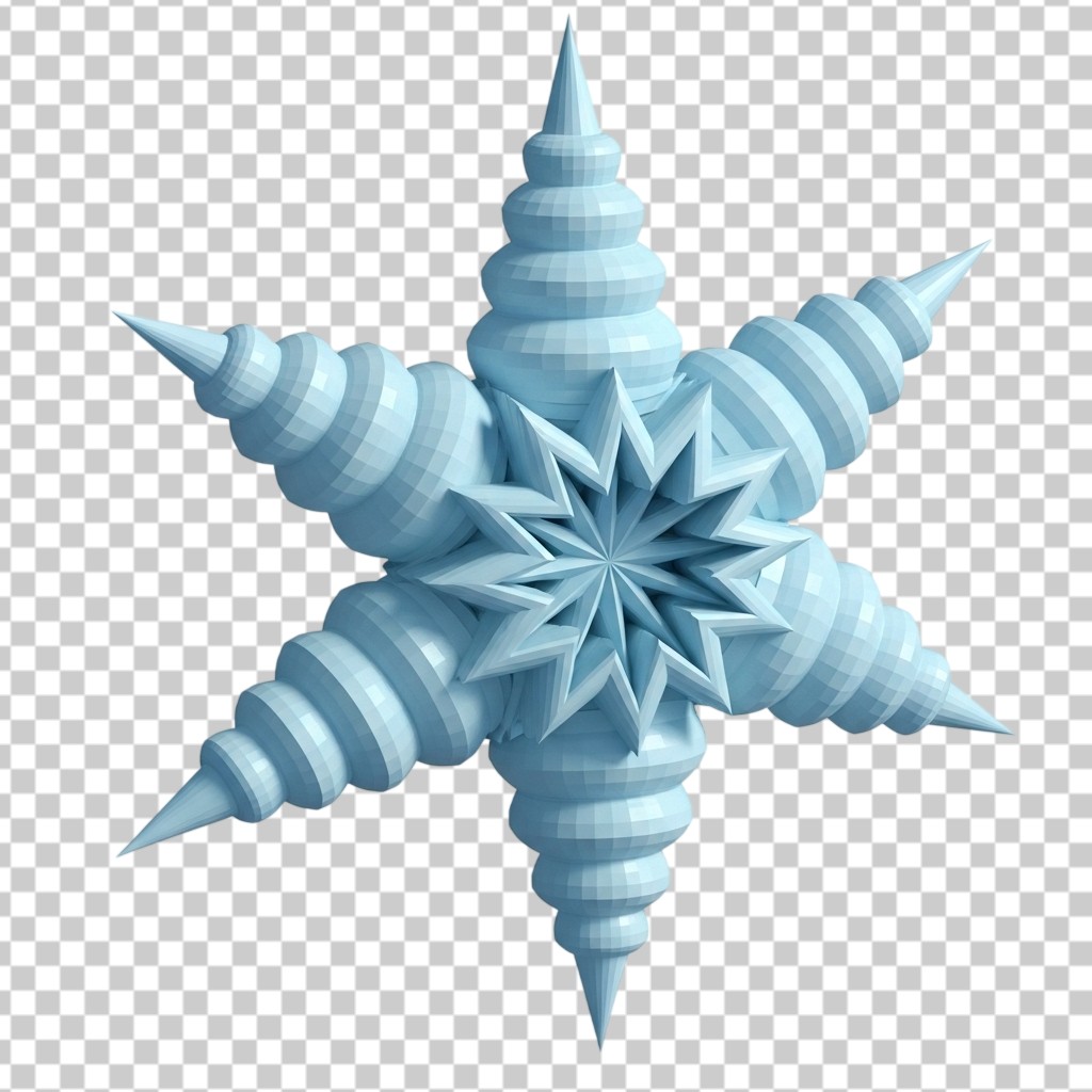 3D Blue Geometric Star or Crystal Snowflake PNG Transparent Background