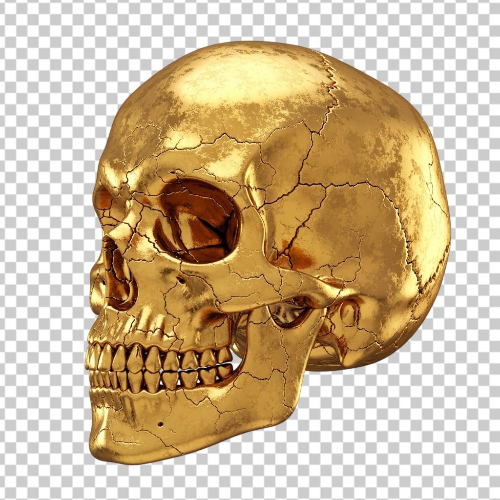 Luxurious Golden Human Skull Statue Figurine PNG Transparent Background