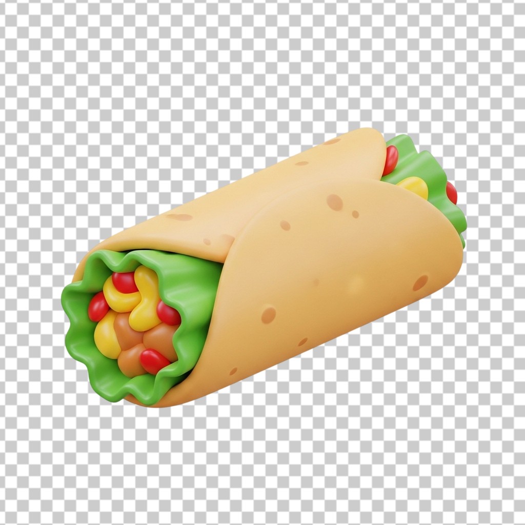Fresh Grilled Chicken Burrito Wrap 3D Fast Food Illustration PNG Transparent Background