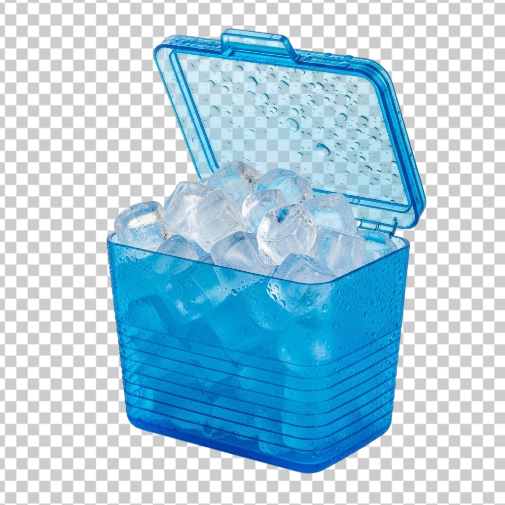 Blue Portable Plastic Ice Chest Cooler with Ice Cubes PNG Transparent Background