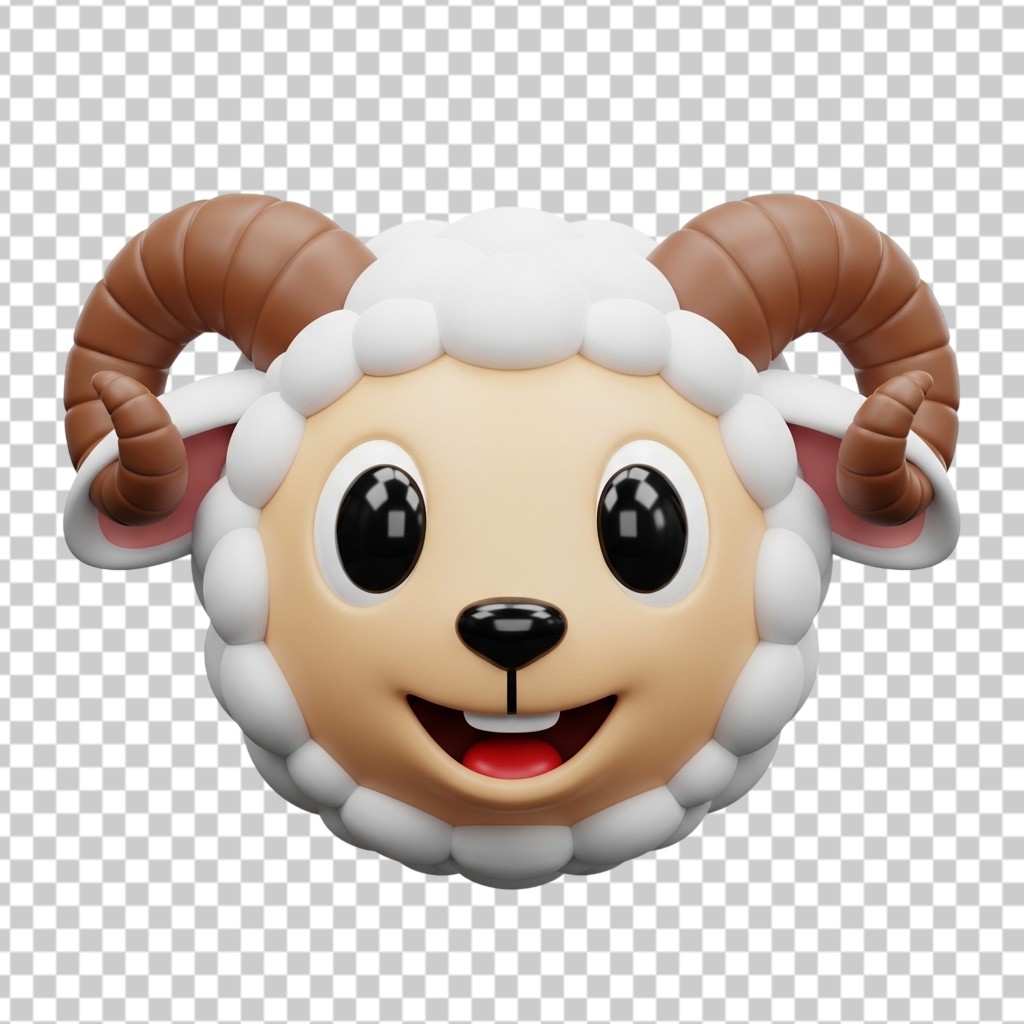3D Happy Smiling Sheep Head Character Illustration for Kids and Animals PNG Transparent Background